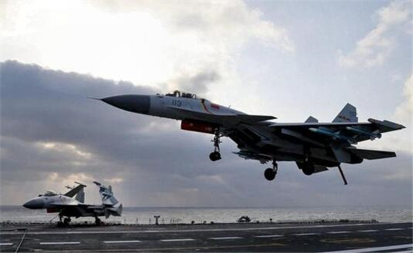 ????資料照片:殲15艦載戰(zhàn)斗機準備在遼寧艦上著艦