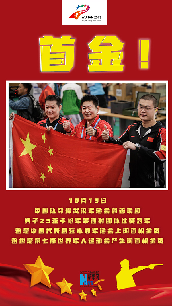新華社武漢10月19日電 題:打響第一槍 射中第一金——中國(guó)隊(duì)勇奪第七屆世界軍人運(yùn)動(dòng)會(huì)首金側(cè)記