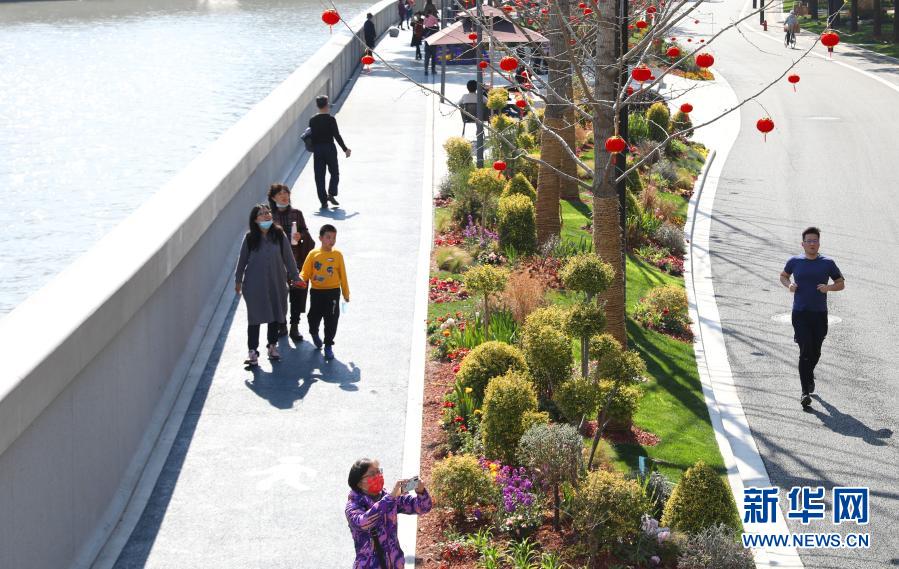 2月21日,人們?cè)谏虾LK州河邊漫步休閑。