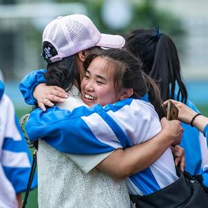 6月9日,烏當(dāng)中學(xué)高三學(xué)生和家長在成人儀式上擁抱。