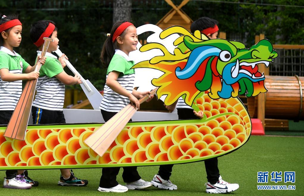 6月10日,石家莊市橋西區(qū)第三幼兒園的小朋友們?cè)谶M(jìn)行劃“龍舟”比賽。