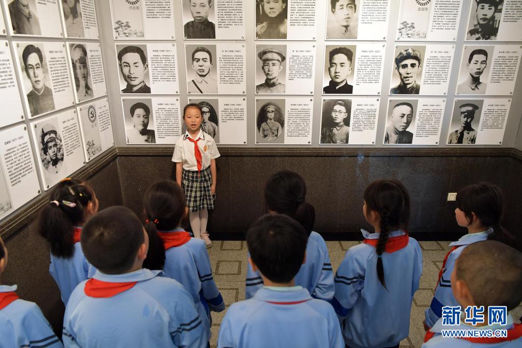 在井岡山革命烈士陵園,“小紅軍宣講團”的成員周煜菡給前來參觀研學的學生們進行義務講解(5月12日攝)。新華社記者 彭昭之 攝