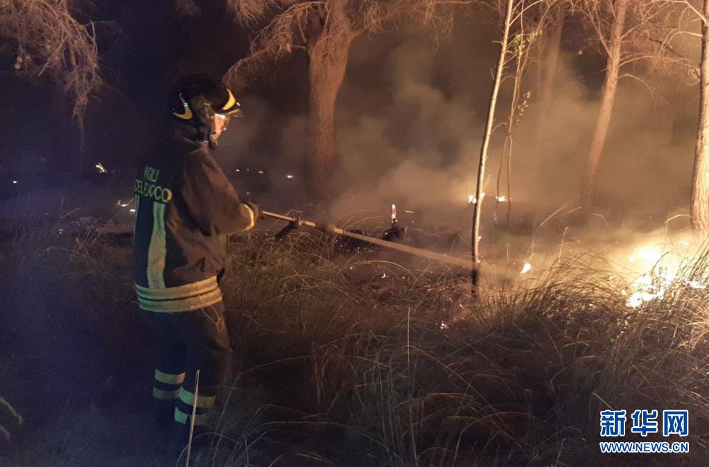 7月26日,消防員在意大利撒丁島參與滅火作業(yè)(手機(jī)照片)。