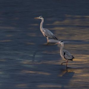 3月17日,两只鹭鸟在锦江河道中迎着逆流“站桩”觅食。