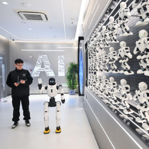 2025年12月4日,在南京人工智能生态街区的“AI·模坊”南京智能体集散中心,一款华夏机器人在打招呼。