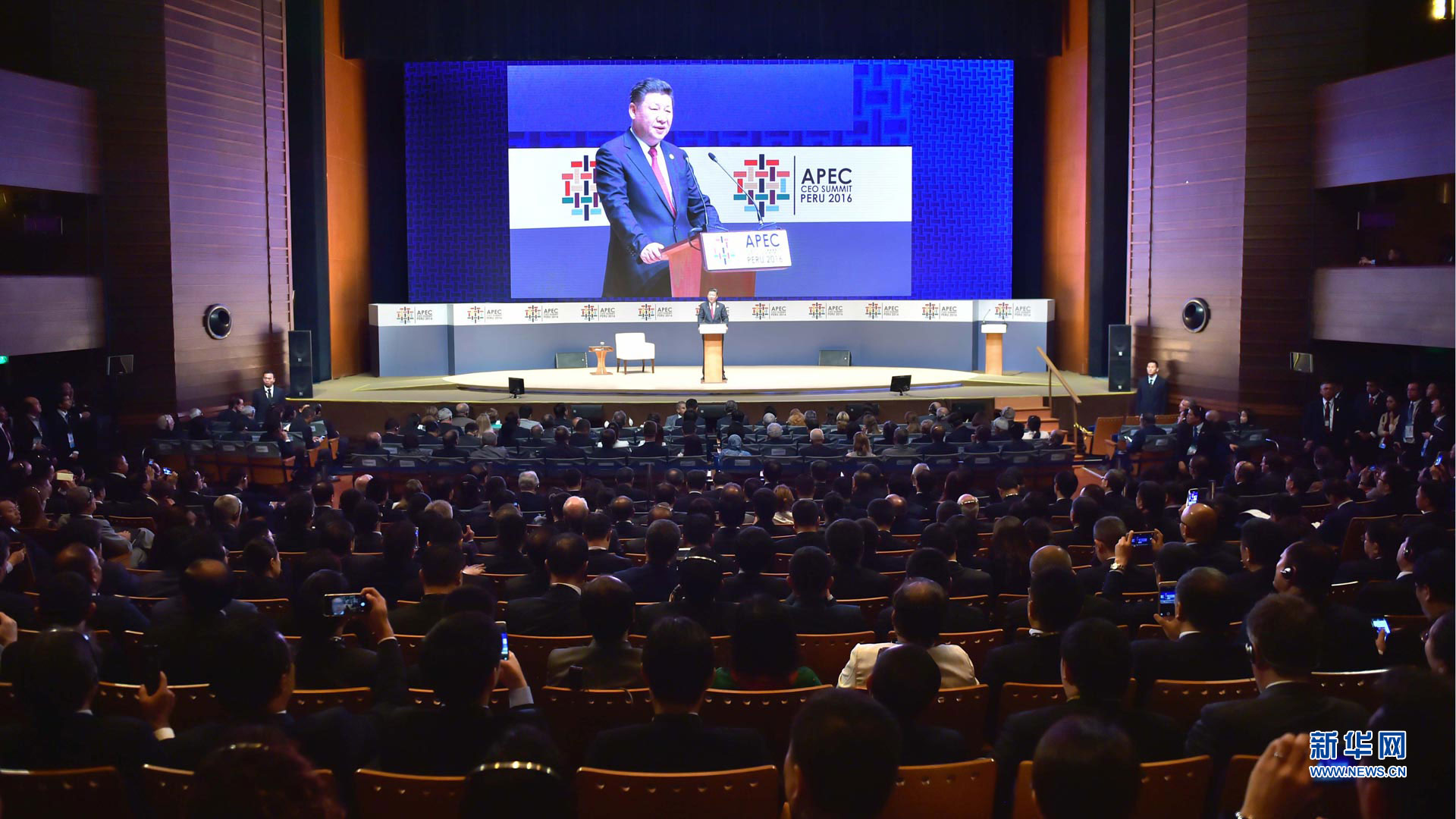 11月19日,2016年亞太經(jīng)合組織工商領(lǐng)導(dǎo)人峰會(huì)在秘魯利馬舉行。國(guó)家主席習(xí)近平應(yīng)邀出席并發(fā)表題為《深化伙伴關(guān)系 增強(qiáng)發(fā)展動(dòng)力》的主旨演講。 新華社記者 李濤 攝2016-11-20