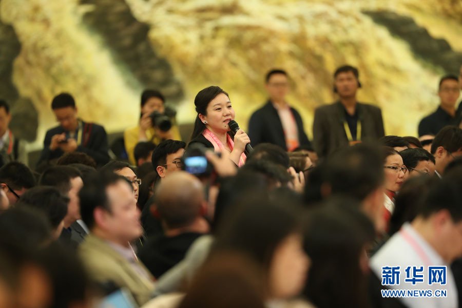 2017年10月17日下午,中國(guó)共產(chǎn)黨第十九次全國(guó)代表大會(huì)新聞發(fā)言人在人民大會(huì)堂三樓金色大廳舉行新聞發(fā)布會(huì),并回答中外記者提問(wèn)。圖為新華社記者提問(wèn)。新華網(wǎng) 翟子赫 攝