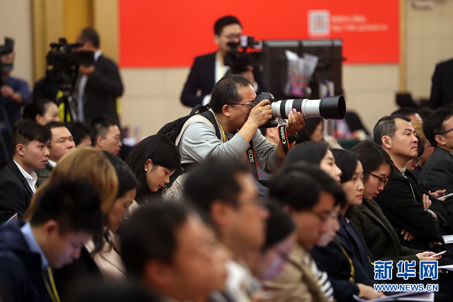 10月21日,十九大新聞中心舉辦記者招待會(huì),邀請(qǐng)中共中央統(tǒng)戰(zhàn)部常務(wù)副部長(zhǎng)張裔炯、副部長(zhǎng)冉萬(wàn)祥,中共中央對(duì)外聯(lián)絡(luò)部副部長(zhǎng)郭業(yè)洲介紹黨的統(tǒng)一戰(zhàn)線工作和黨的對(duì)外交往情況,并回答記者提問(wèn)。圖為現(xiàn)場(chǎng)記者。新華網(wǎng) 郝廣鵬攝