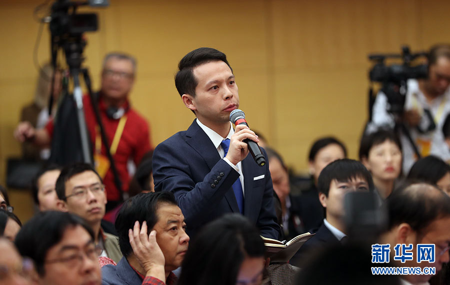 10月22日,十九大新聞中心舉辦記者招待會(huì),邀請教育部黨組書記、部長陳寶生,民政部黨組書記、部長黃樹賢,人力資源社會(huì)保障部黨組書記、部長尹蔚民,住房城鄉(xiāng)建設(shè)部黨組書記、部長王蒙徽,國家衛(wèi)生計(jì)生委黨組書記、主任李斌介紹滿足人民新期待,保障改善民生有關(guān)情況,并回答記者提問。圖為中國日報(bào)記者提問。新華網(wǎng) 郝廣鵬攝