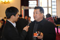 [新華網、中國政府網報道]政協(xié)委員們聚集在人民大會堂東大廳,歡聲笑語不斷。 [2011-03-03 14:41:55] |