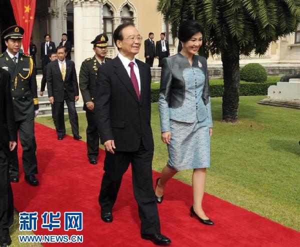 ????會談前,英拉為溫家寶舉行隆重歡迎儀式。