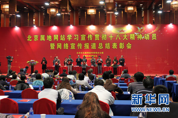 ??? 新華網(wǎng)北京11月28日電(記者 陳元)27日,北京市互聯(lián)網(wǎng)宣傳管理辦公室召開北京屬地網(wǎng)站學(xué)習(xí)宣傳貫徹黨的十八大精神動員大會暨網(wǎng)絡(luò)宣傳報道總結(jié)表彰會。