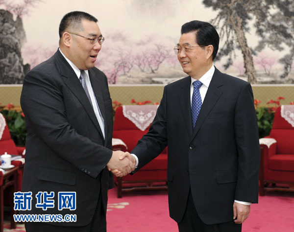 ??? 新華網快訊:國家主席胡錦濤21日下午在中南海會見了來京述職的澳門特別行政區(qū)行政長官崔世安。