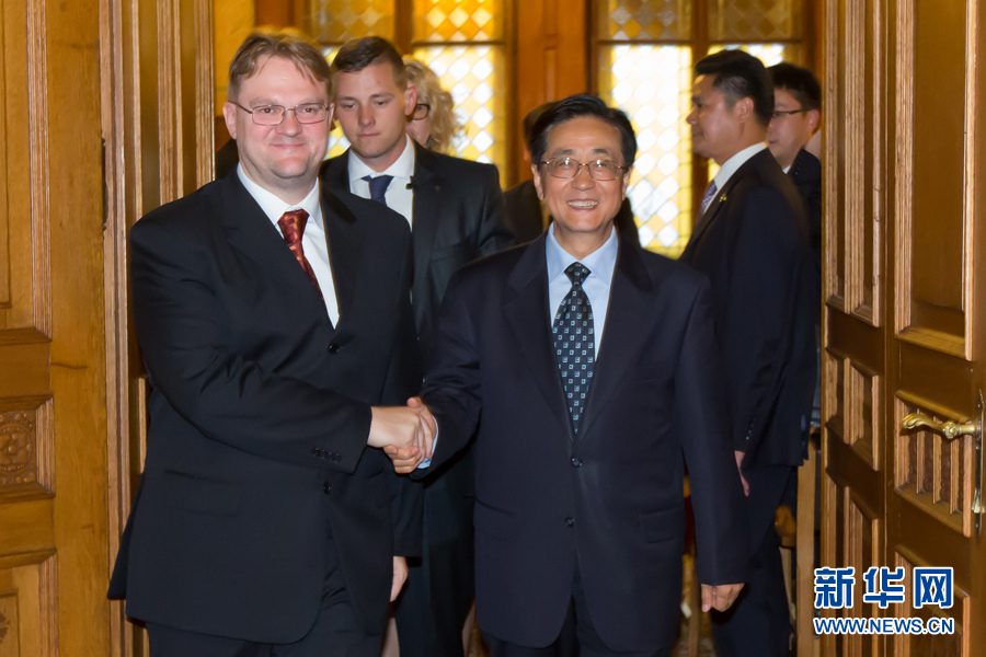 ??? 9月11日,中共中央書記處書記、中央紀委副書記趙洪祝(右)在布達佩斯會見匈牙利司法部國務秘書雷帕希。應匈牙利執(zhí)政黨青民盟邀請,中共中央書記處書記、中央紀委副書記趙洪祝率中共代表團于9月10日至11日訪問匈牙利。新華社發(fā)(弗爾季·奧蒂洛攝)