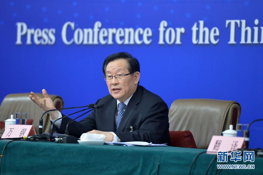????? 十二屆全國(guó)人大三次會(huì)議新聞中心于3月11日10時(shí)45分舉行記者會(huì),邀請(qǐng)科技部部長(zhǎng)萬(wàn)鋼就科技改革與發(fā)展回答中外記者提問(wèn)。圖為萬(wàn)鋼回答記者提問(wèn)。新華網(wǎng)/中國(guó)政府網(wǎng) 郭小天 攝