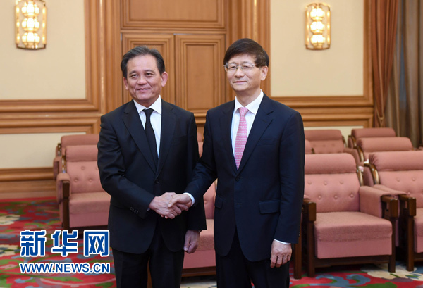 新華社北京6月12日電(記者王卓倫)中共中央政治局委員、中央政法委書記孟建柱12日在中南海會(huì)見(jiàn)泰國(guó)首席大法官、大理院院長(zhǎng)維拉蓬·湯蘇萬(wàn)。