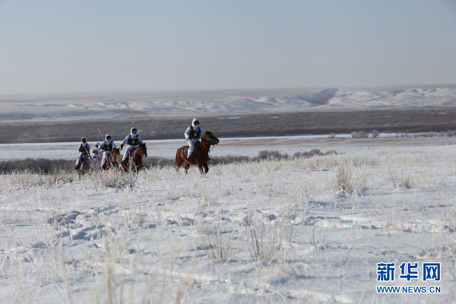 戍邊官兵冬季在邊防線上巡邏執(zhí)勤。陳在林 攝