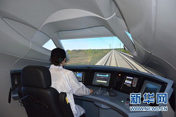 在中國通號CTCS-3實(shí)驗(yàn)室體驗(yàn)高鐵貼地“飛行”。據(jù)工作人員介紹,該實(shí)驗(yàn)室采用半實(shí)物仿真建模方法,通過上萬公里高鐵工程的現(xiàn)場驗(yàn)證,仿真平臺的可信度達(dá)到國際一流。新華網(wǎng)陳淑君攝