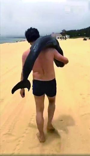 昨天,網(wǎng)絡流傳的多段視頻顯示,一名身穿泳衣的男子疑似背上扛著一只海豚在沙灘行走(見圖)。多位網(wǎng)友回復稱,該事件發(fā)生于廣東陽江市海陵島沙灘附近,涉事男子直接把海豚扛走。