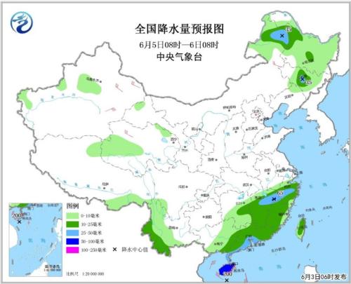 全國降水量預(yù)報(bào)圖(6月5日08時(shí)-6月6日08時(shí))
