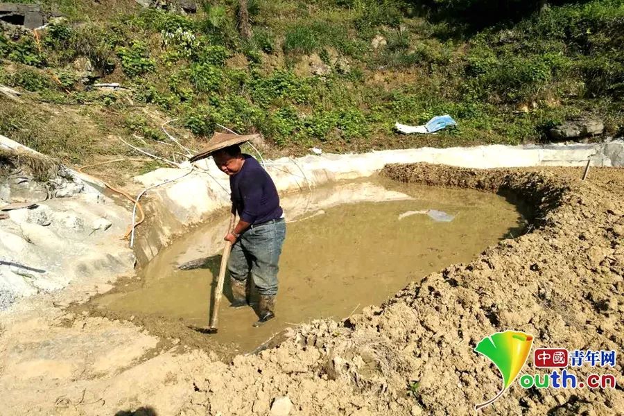 2017年干旱,王明禮在修筑蓄水塘。本人供圖?