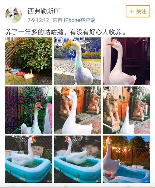 原來前些日子,一位名叫“西弗勒斯FF”的網(wǎng)友發(fā)微博稱,自己是上海松江區(qū)寵物鵝的主人,由于要搬家,養(yǎng)了一年半的鵝無法繼續(xù)養(yǎng)下去,想問上海海事大學(xué)能不能幫忙收養(yǎng),并稱自己的鵝非常英俊。