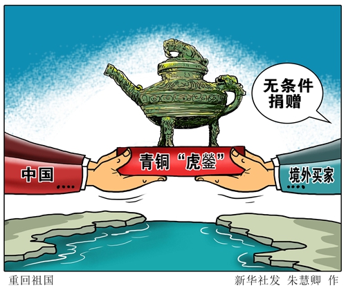 據(jù)悉,在買下青銅“虎鎣”后,境外買家通過拍賣機(jī)構(gòu)聯(lián)系國家文物局,希望將文物無條件捐贈。在鑒定接收等各項工作完成后,青銅“虎鎣”于11月23日安全抵達(dá)北京。