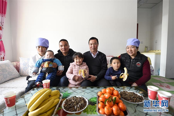 馬國(guó)權(quán)和家人在潤(rùn)豐村的新家中合影(2月18日攝)。新華社發(fā)(馮開(kāi)華 攝)