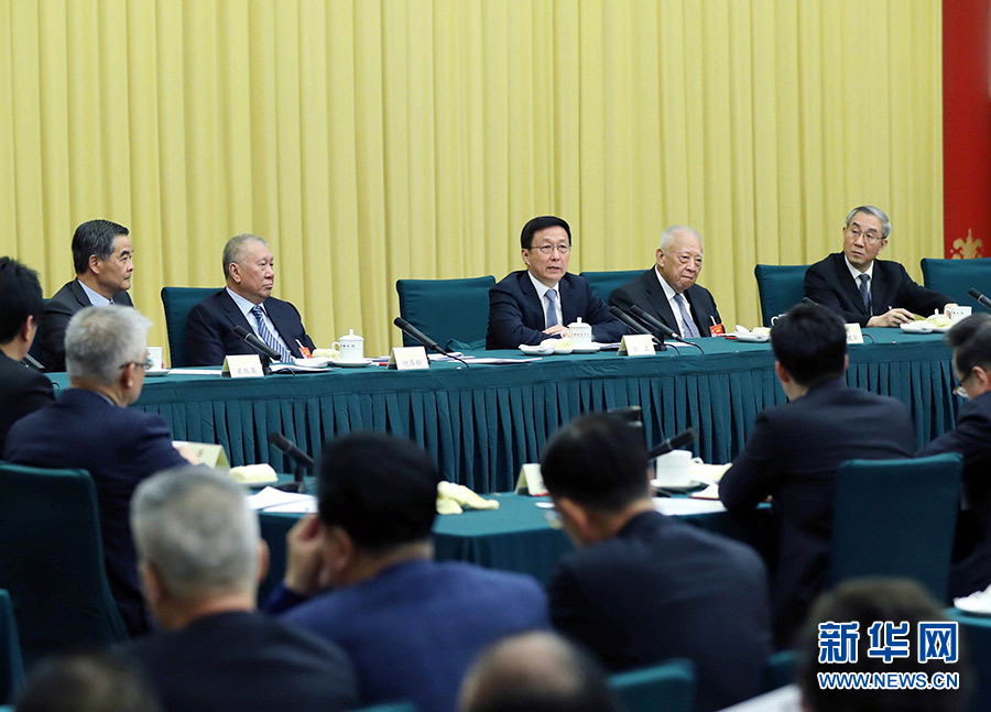 3月4日,中共中央政治局常委、國務(wù)院副總理韓正看望出席全國政協(xié)十三屆二次會(huì)議的港澳地區(qū)全國政協(xié)委員并參加討論。 新華社記者 劉衛(wèi)兵 攝