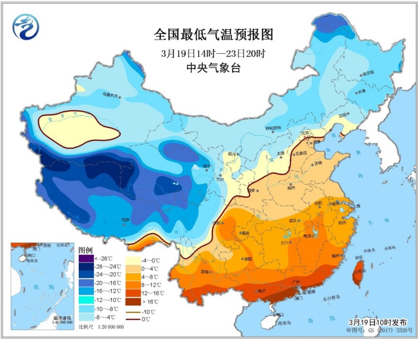張濤:這次冷空氣過程體現(xiàn)出降溫幅度大和影響范圍廣的主要特點。由于前期氣溫較高,在這次天氣過程中,各地基礎氣溫不會太低,氣溫變化帶來的影響較大,但公眾感覺的寒冷程度不會太大。中央氣象臺已于3月19日10時發(fā)布寒潮藍色預警,提醒公眾注意氣溫變化。