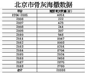 目前,以骨灰海葬、骨灰自然葬為代表的節(jié)地生態(tài)葬式已成為北京市骨灰安葬的主流。本市骨灰海葬活動(dòng)自1994年實(shí)施以來,迄今已順利組織了485次,播撒骨灰21666份,服務(wù)逝者家屬67887人次,僅2018年就組織骨灰撒?;顒?dòng)70批次,播撒骨灰2760份,參加活動(dòng)家屬11160人,在全國居于領(lǐng)先地位?!笆濉蹦?,骨灰海葬量預(yù)計(jì)將達(dá)到北京市年火化總量的4%。