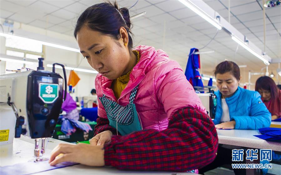 工人在服裝企業(yè)“扶貧工坊”工作