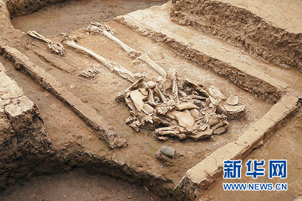 這是黃山遺址發(fā)現(xiàn)的疑似屈家?guī)X文化氏族首領(lǐng)的高等級墓葬(4月29日攝)。 新華社記者 袁月明 攝