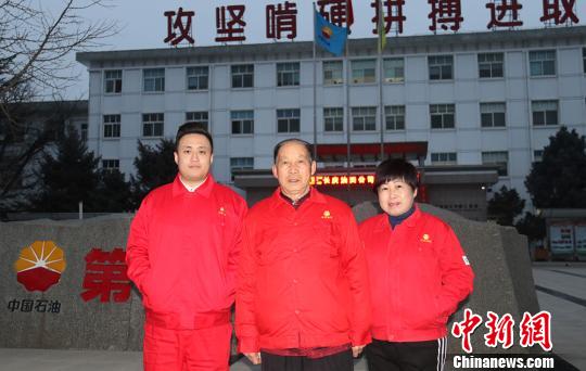 長慶油田三代人扎根西北,共同見證著油田的數(shù)載發(fā)展。(中:芮執(zhí)甲 左:藺鼎讀 右:芮軍紅) 張鵬飛 攝