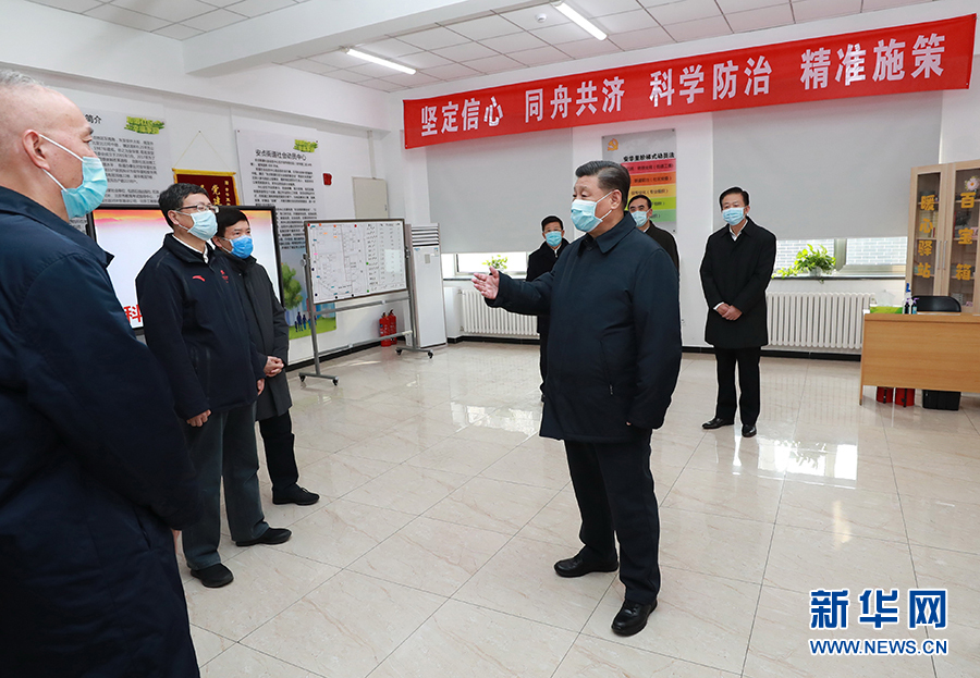 2月10日,中共中央總書記、國家主席、中央軍委主席習(xí)近平在北京調(diào)研指導(dǎo)新冠肺炎疫情防控工作。這是習(xí)近平來到朝陽區(qū)安貞街道安華里社區(qū),了解基層一線疫情聯(lián)防聯(lián)控情況。 新華社記者 鞠鵬 攝