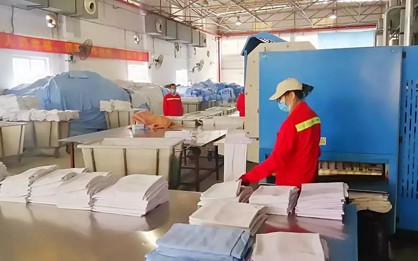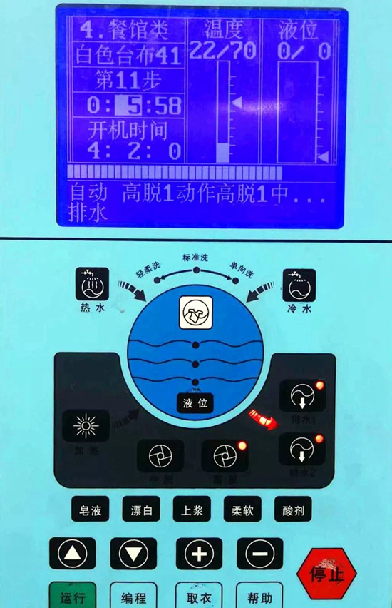 一套臥具要經(jīng)過11道洗滌消毒工序,過程中設(shè)備會自動加熱,溫度逐步加熱至80攝氏度,在這樣的恒定高溫下要足足轉(zhuǎn)洗約50分鐘。