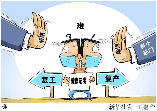 根據(jù)中央部署,全國不少地方在嚴(yán)抓疫情防控的基礎(chǔ)上,正逐步開展復(fù)工復(fù)產(chǎn)?!靶氯A視點(diǎn)”記者接到一些群眾和企業(yè)反映,返程上班和恢復(fù)生產(chǎn),在辦理相關(guān)證明過程中遭遇不少形式主義的煩惱。