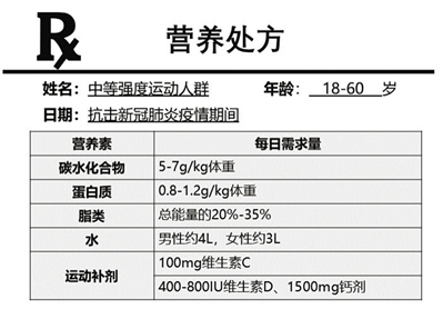 保持膳食均衡,每天飲食中50%能量來自碳水化合物,不可不進食脂類,確保充足的蛋白質攝入,優(yōu)質蛋白占總比例的三分之一,多食新鮮果蔬等。疫情可能造成物資匱乏、日照不充足等情況,必要時可補充飲食中無法滿足的參與抗氧化作用的維生素C以及在骨代謝方面發(fā)揮重要作用的維生素D與鈣劑。