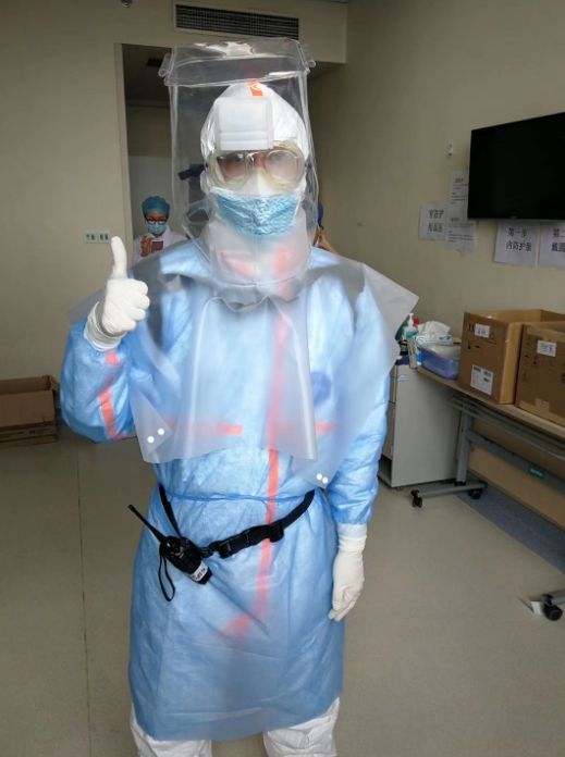 首先是防護(hù)裝備。進(jìn)隔離病房一般是三級(jí)防護(hù),除穿戴防護(hù)服、隔離衣、護(hù)目鏡、N95口罩、兩層手套,兩層腳套外,還要戴正壓防護(hù)頭套或一次性全面型防護(hù)頭套。此外,頭套還帶有新風(fēng)過濾系統(tǒng)。整套防護(hù)裝備,凌肯在老師的幫助下,花了半個(gè)小時(shí)才穿上。穿戴完畢,凌肯整個(gè)人都很難受。護(hù)目鏡起霧,頭套風(fēng)機(jī)發(fā)出巨大噪音,還有悶熱,整個(gè)人都變得遲鈍。