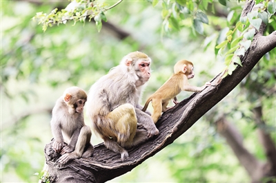 生活在貴陽市黔靈山公園內(nèi)的獼猴 記者 徐譚攝