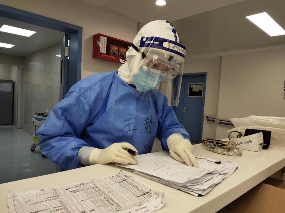 圖為北京大學人民醫(yī)院馳援武漢醫(yī)療隊的王毅在工作中。