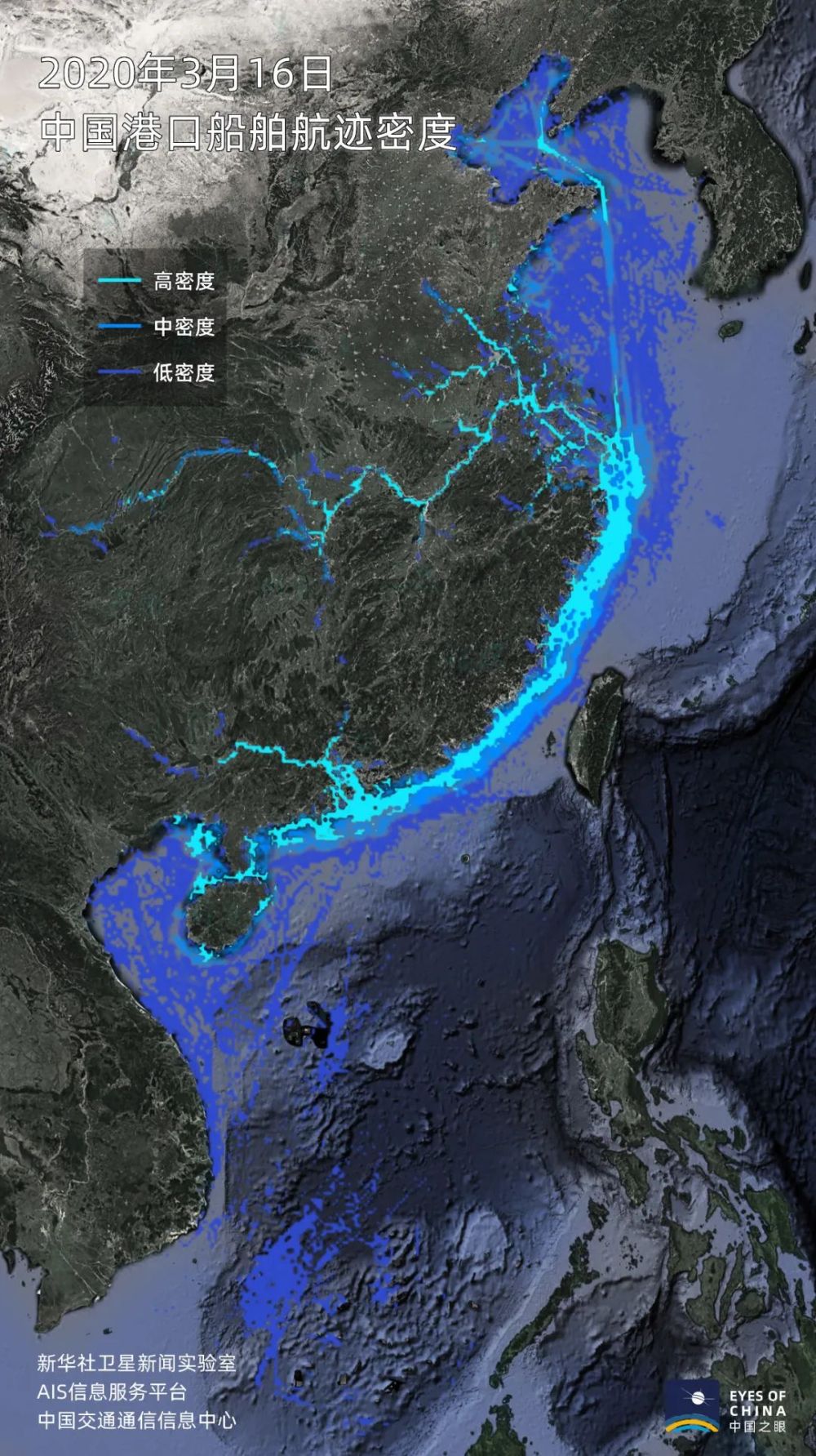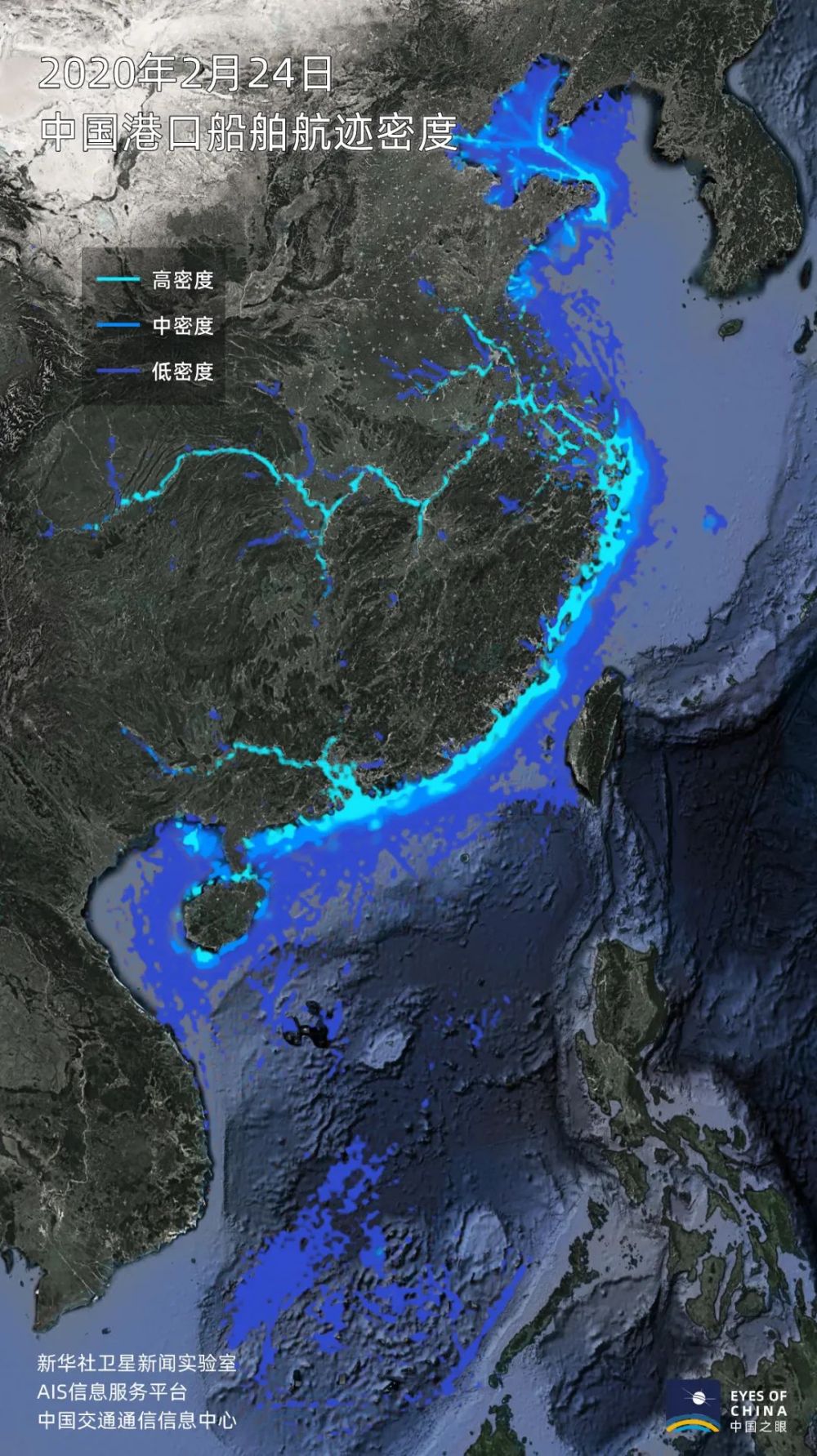 根據(jù)通信衛(wèi)星等方式獲得的船舶信息,中國(guó)沿海及內(nèi)河的船舶活躍度正在快速提升。