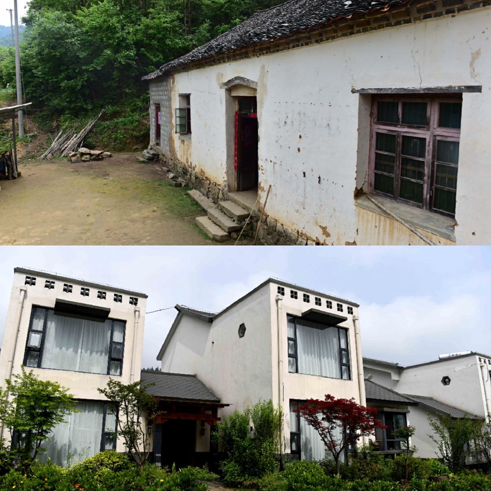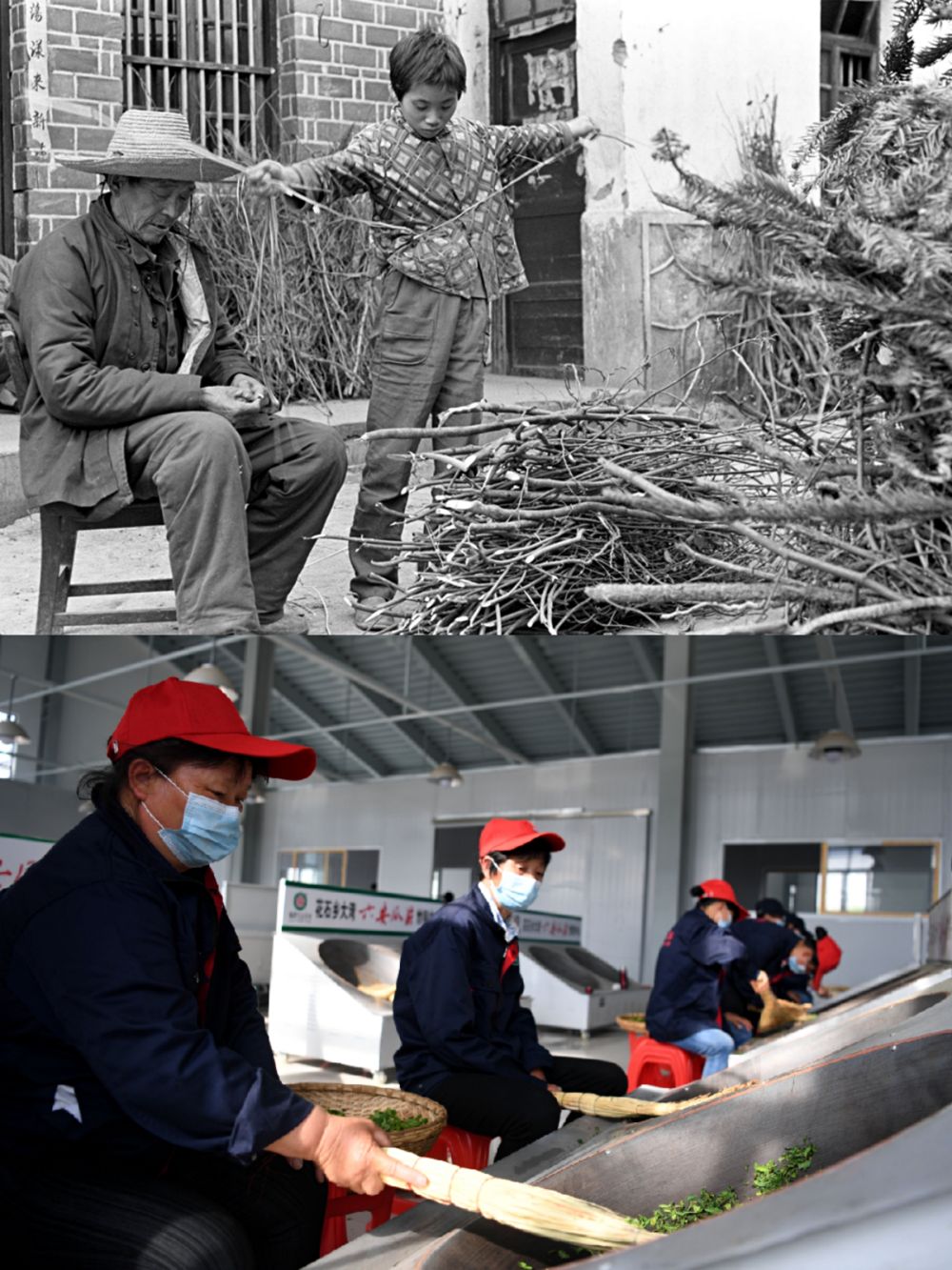 ?。ㄉ蠄D:過去金寨人守著柴火過日子,新華社記者張曙光攝;下圖:2020年4月16日,大灣村村民在金寨縣花石鄉(xiāng)茶產業(yè)扶貧車間里加工茶葉。新華社記者劉軍喜攝)