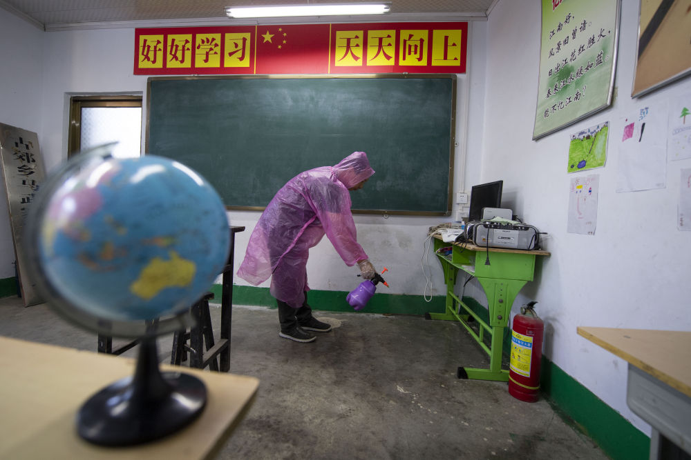 開學(xué)前兩周,學(xué)校老師在當?shù)匦l(wèi)生院的指導(dǎo)下,對校內(nèi)教室、宿舍、食堂等地進行消殺和通風(fēng)。