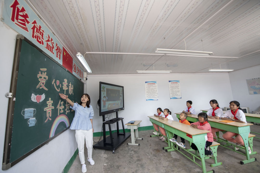 在開學(xué)第一課上,特崗教師陳燕子主持召開主題為“愛心奉獻,責(zé)任擔當”的班會,為學(xué)生講解疫情防控知識、分享抗疫人物故事。