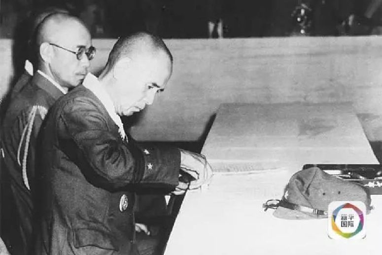 這是侵華日軍總司令岡村寧次等在南京簽蓋降書。