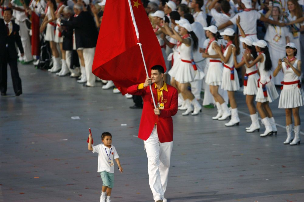 手舉國旗入場的姚明