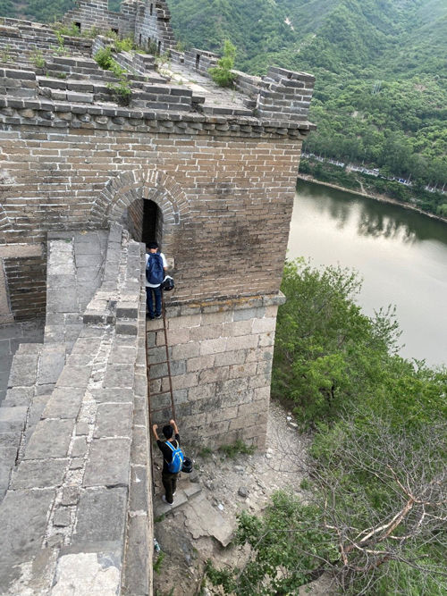 他說,登野長城是不允許的,近年來,北京市文物局也加大了巡查力度,設置了一些負責長城環(huán)保的公益志愿者和長城保護工作人員巡山。如果被發(fā)現,梯子肯定要被鄉(xiāng)鎮(zhèn)沒收。據稱,登城所用的梯子就被鄉(xiāng)鎮(zhèn)沒收了3次。為保險起見,他會早晨放梯,晚上再撤掉。