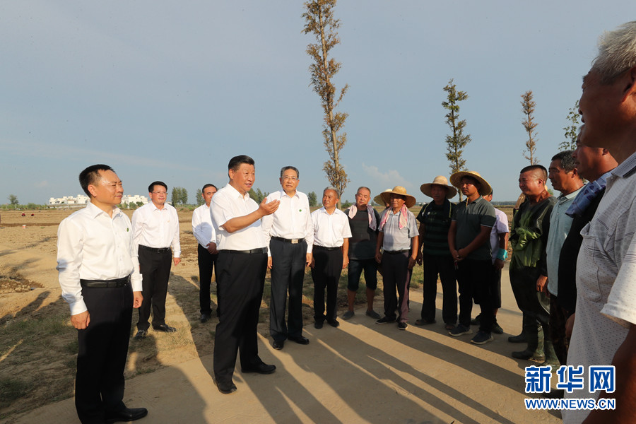 8月18日至21日,中共中央總書記、國(guó)家主席、中央軍委主席習(xí)近平在安徽省考察。這是18日下午,習(xí)近平在阜陽(yáng)市阜南縣蒙洼蓄洪區(qū),同正在退水地塊補(bǔ)種蔬菜的鄉(xiāng)親們親切交流。 新華社記者 鞠鵬 攝