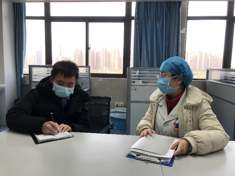 2月21日,范昊天(左一)在襄陽市中心醫(yī)院東津院區(qū)采訪